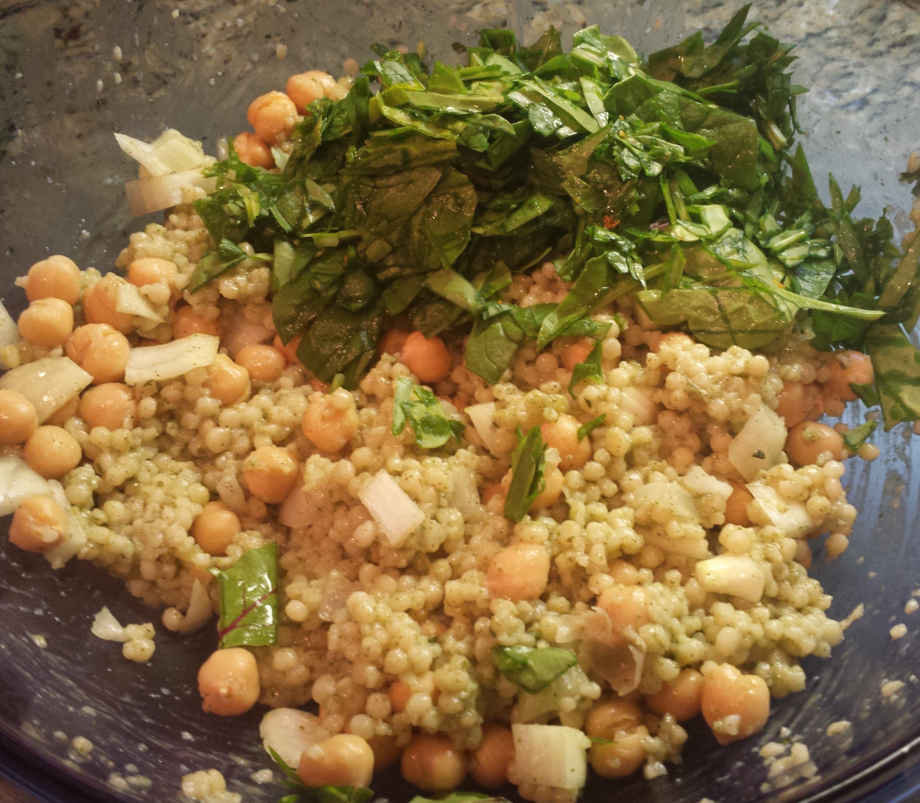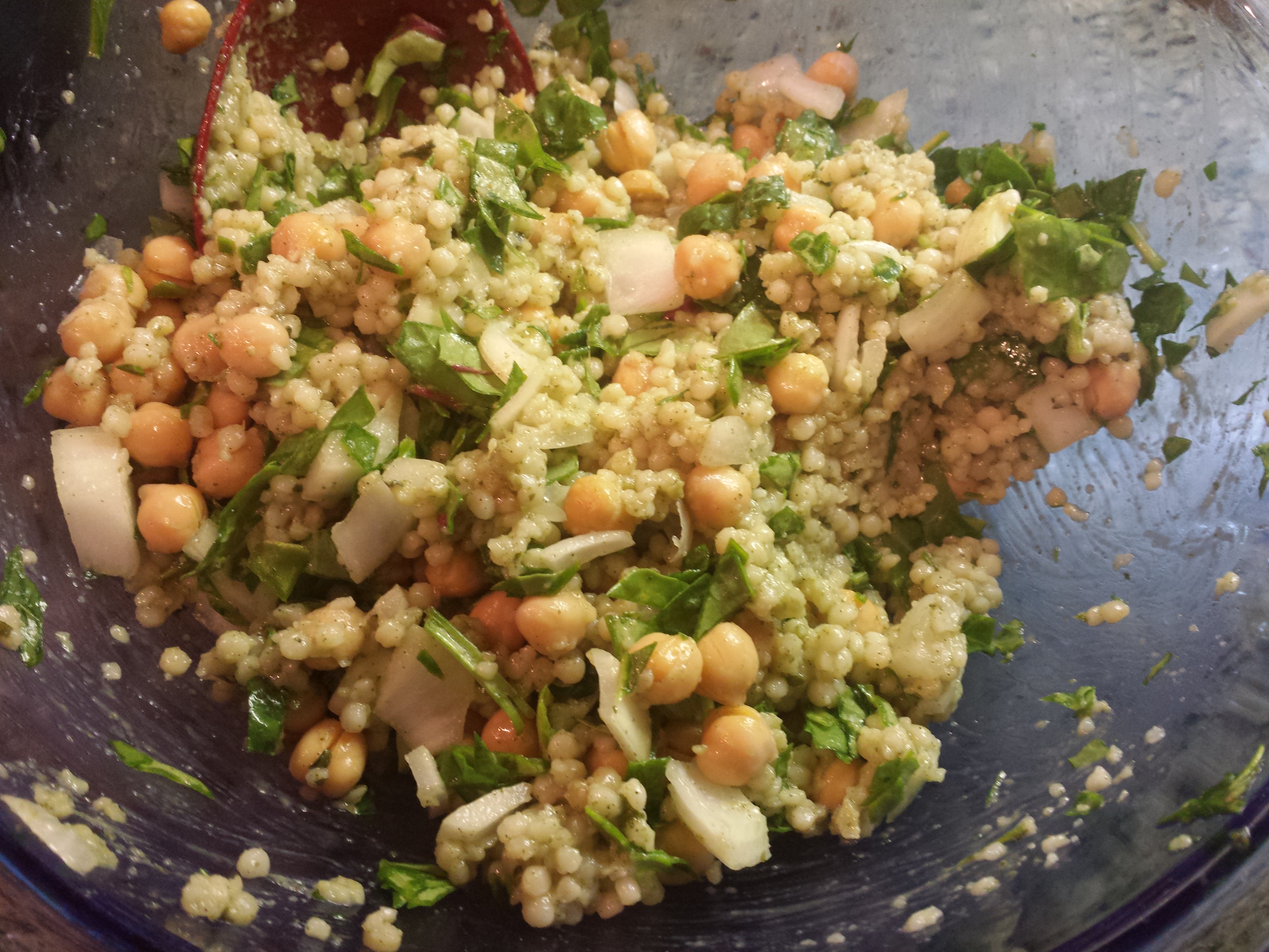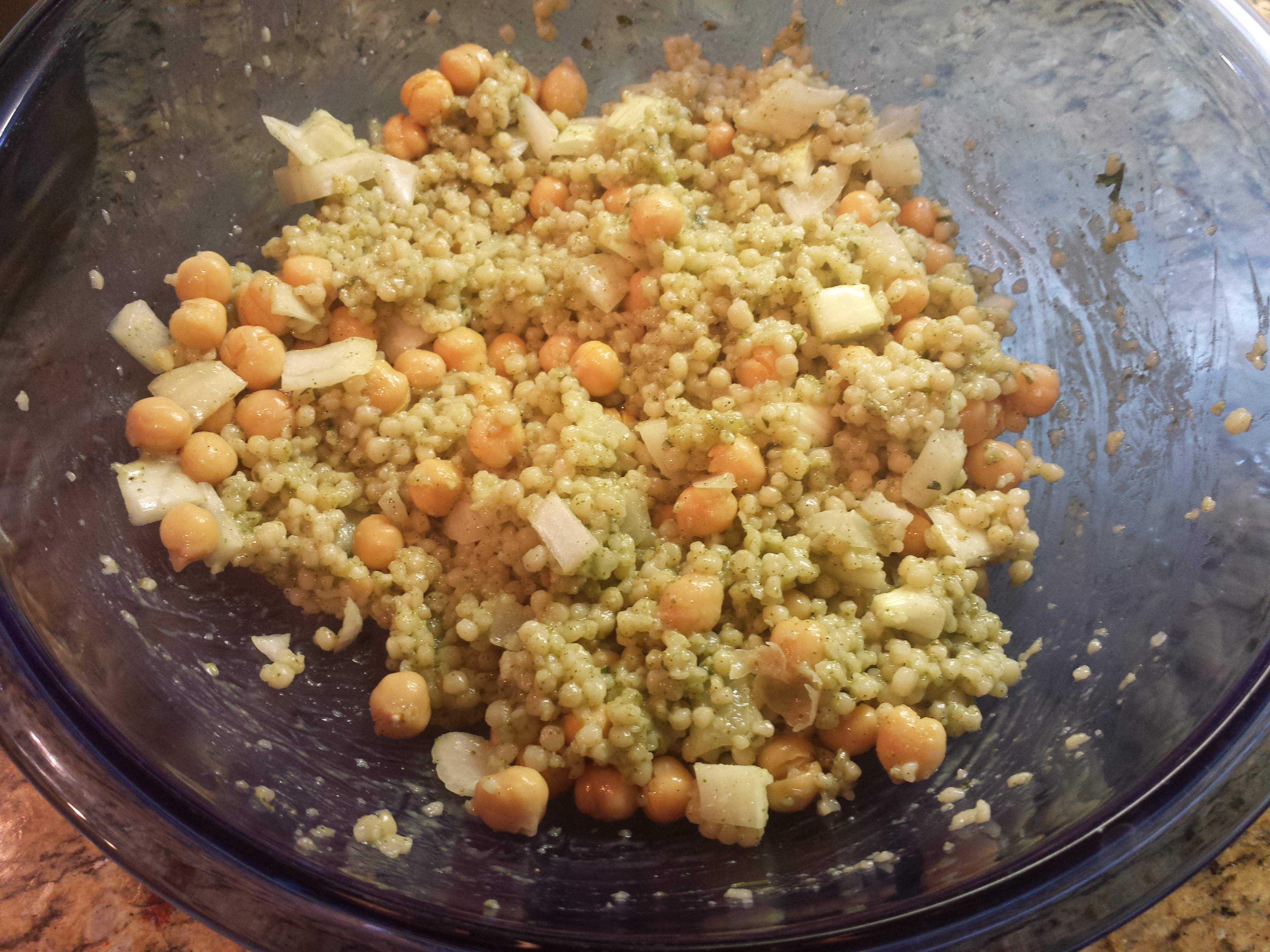 - Cook the couscous per directions on the box. Remove from heat and cool.