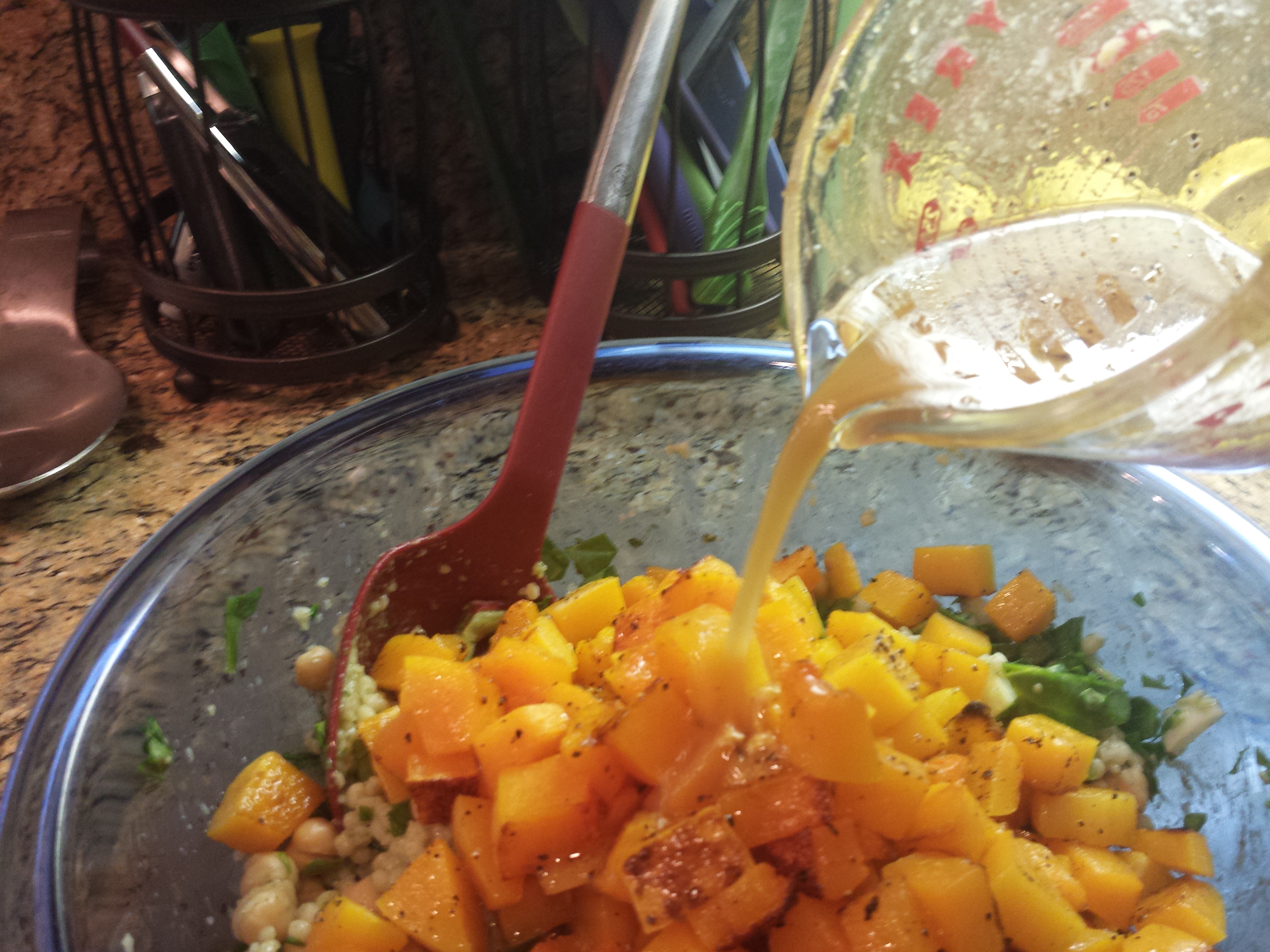 - Add squash and dressing, mix