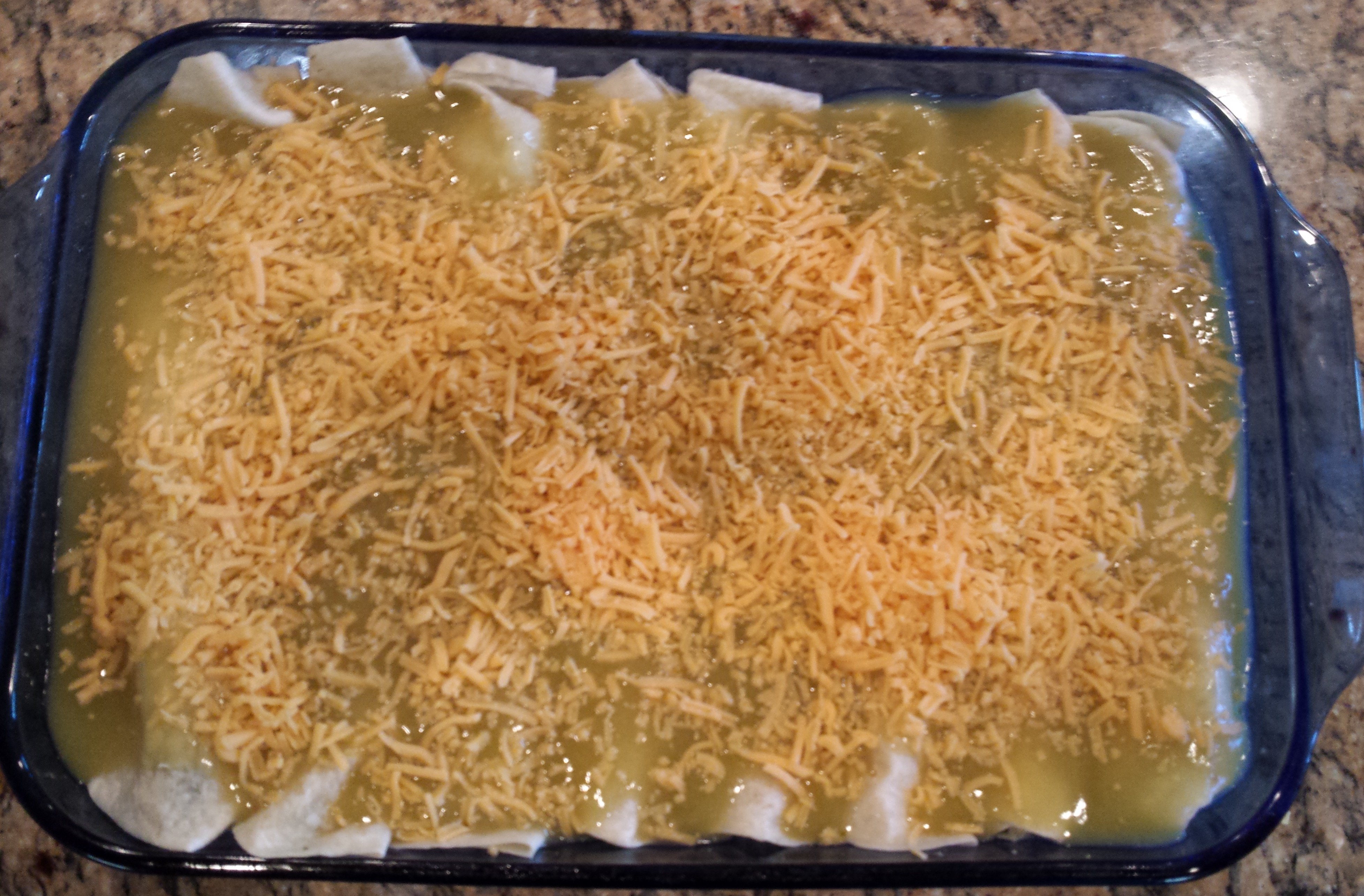 - Number of tortillas to roll? I usually only make 8. If you make more, you can have a second row on top of the first. This is fine, but then I feel they do not all get the enchilada sauce and cheese that I prefer.