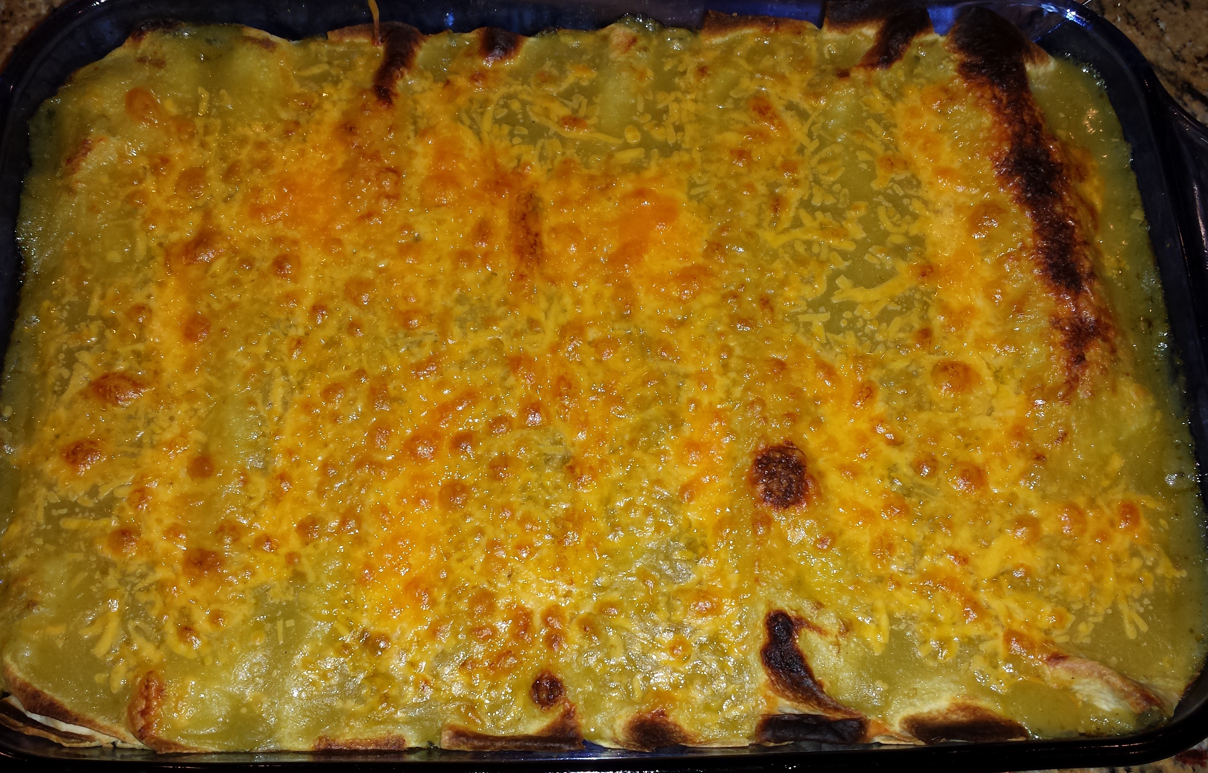 - Broiling – I like to broil on low for about 3 minutes and then switch to high to finish. My husband prefers nicely browned enchiladas and I prefer mine a little more moist. Every oven has different rates of cooking, especially when broiling, so watch closely and rotate as needed.